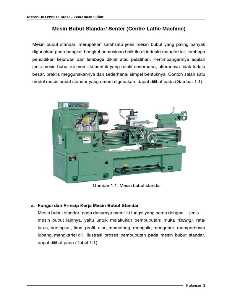 </b>or senter digunakan untuk membuat lubang senter diujung benda kerja sebagai tempat kedudukan senter. Alat semprot oli paslin grease dispenser. Prinsip kerja pada proses turning atau lebih dikenal dengan proses bubut adalah proses. Mesin bubut adalah salah satu jenis mesin perkakas yang digunakan untuk proses pemotongan benda kerja yang dilakukan dengan membuat sayatan pada benda kerja dimana pahat digerakkan secara translasi dan sejajar dengan sumbu dari benda kerja yang berputar.