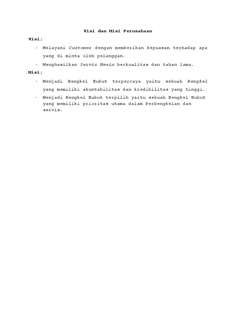 View Visi Misi Sebuah Bengkel Bubut Images. Berikut contoh visi dan misi dari unicorn indonesia. Visi dan misi dalam suatu perusahaan seperti suatu kesatuan yang kompleks.