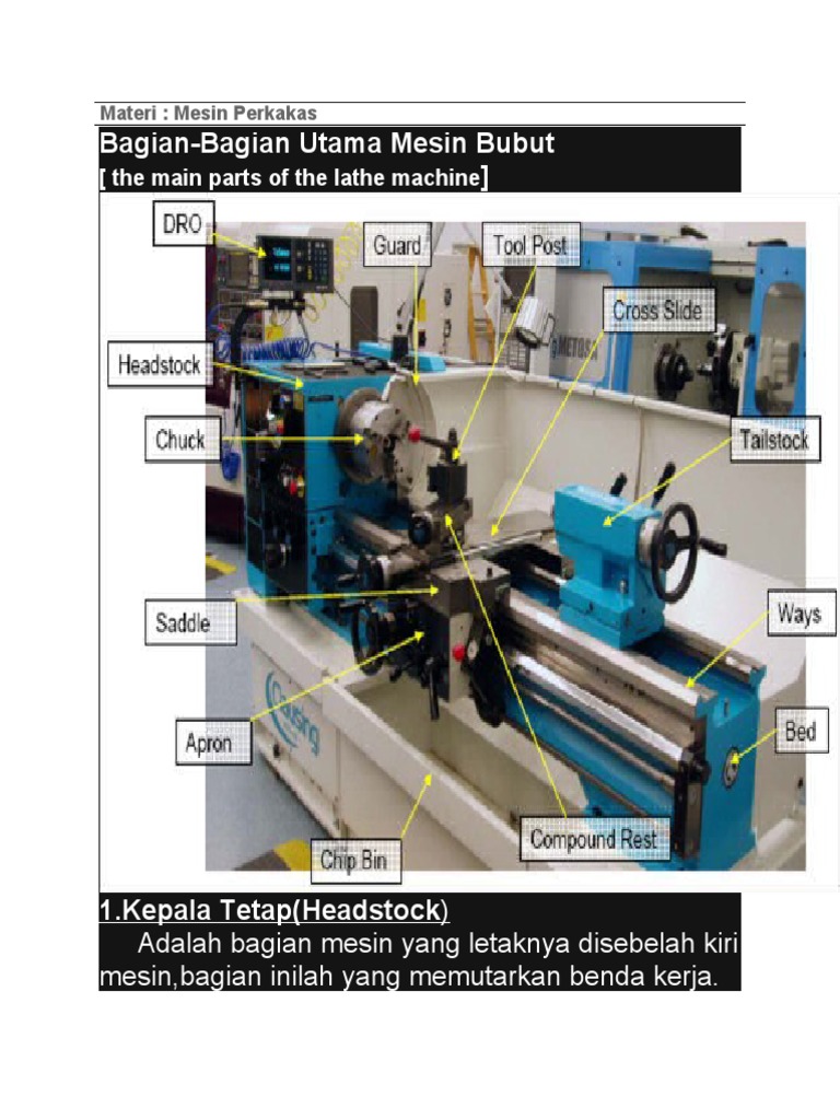 Mesin Perkakas Konvensional Mesin Bubut Kursus Operator Mesin Cnc Bekasi from i1.wp.com Prinsip kerja pada proses turning atau lebih dikenal dengan proses bubut adalah proses penghilangan bagian dari benda kerja untuk memperoleh bentuk tertentu. Sedikit memberikan pemahaman, artikel berikut akan menjelaskan seputar mesin bubut, bagaimana cara menggunakan dan apa saja yang bisa dibuat. Fungsi setiap bagian tersebut secara simultan sobat mesin, ada 4 bagian utama mesin bubut yang perlu diketahui, seperti ditunjukkan pada gambar berikut ini.