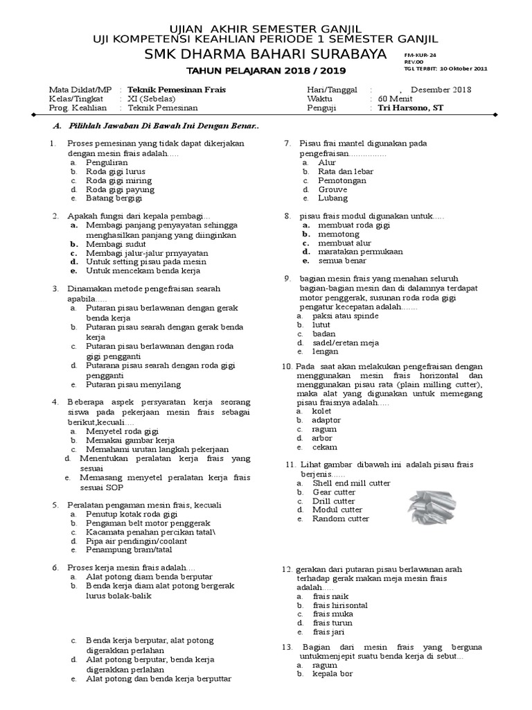 Uas Frais Kelas Xi Tpm Semster Ganjil 2018 from imgv2-2-f.scribdassets.com Kapan anda membutuhkan mesin cnc? Secara umum, pabrik cnc sangat efisien dalam hal pembuatan prototipe, produksi jangka pendek komponen. Perlengkapan mesin frais digunakan untuk menunjang berbagai jenis pekerjaan dalam proses pengefraisan.