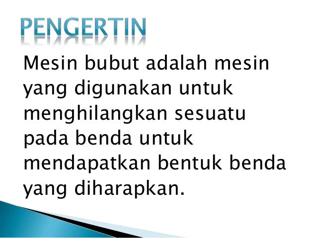 Sentot wijanarka, m.t.— presentation transcript Pengoperasian mesin bubut— transcript presentasi: Buat presentasi dari awal atau dari templat. Mesin bubut merupakan salah satu jenis mesin perkakas.