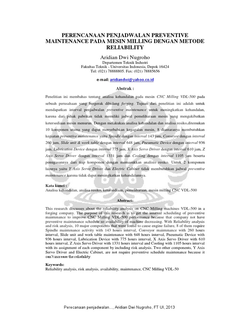 View Penjadwalan Maintenace Mesin Cnc Milling Menggunakan Metode