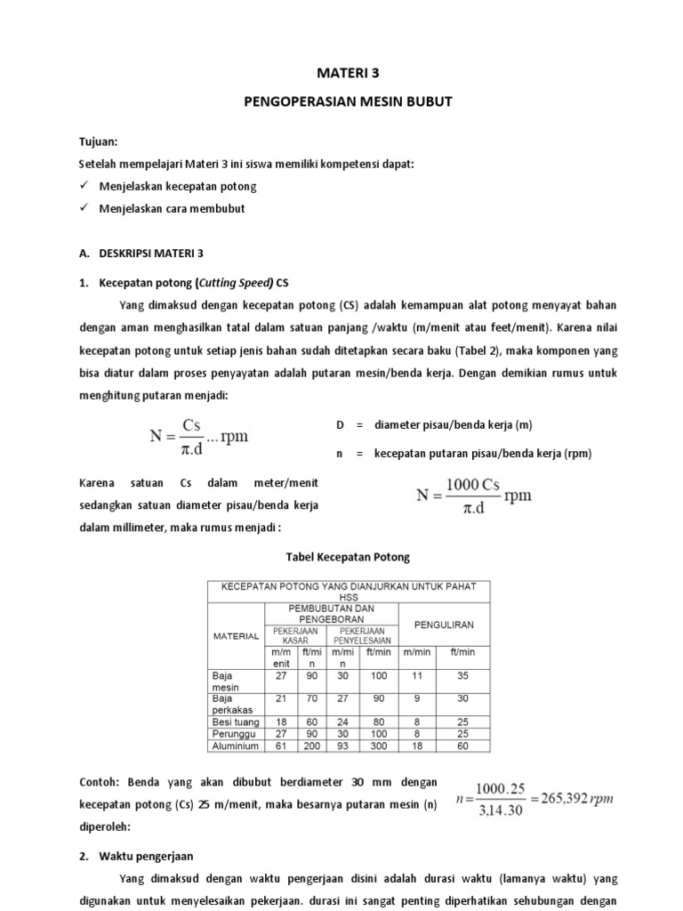D (diameter besar) =70 l (panjang tirus) = 100 d (diameter kecil) =60 dita:besar sudut pergeseran eretan atas (a/2). Jenis jenis pahat mesin bubut. Waktu merupakan interval antara dua buah keadaan/kejadian, atau bisa merupakan lama berlangsungnya suatu kejadian. Kecepatan putaran mesin bubut adalah, kemampuan kecepatan putar mesin bubut untuk melakukan pemotongan atau penyayatan dalam satuan putaran/menit.