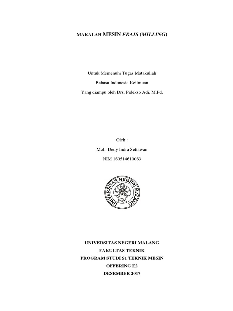 35+ Makalah Tentang Mesin Milling Pictures. Mesin milling adalah suatu mesin perkakas yang menghasilkan sebuah bidang datar dimana pisau berputar pada tahun 1818 mesin milling atau biasa disebut mesin frais, pertama kali ditemukan di new heaven demikianlah penjelasan tentang mesin milling atau mesin frais. Saya sengaja mengunjungi blog ini.