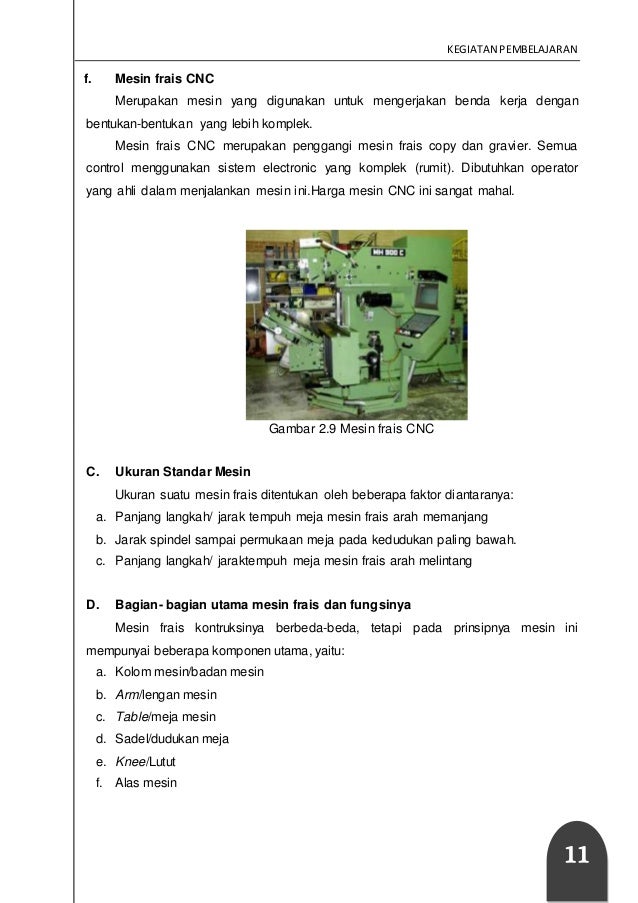 Jenis mesin frais mesin frais yang digunakan dalam proses pemesinan ada. Selanjutnya dilakukan dengan menggunakan mesin mesin bor ( drilling ), dimana balok yang di milling sebelunya telah berbentuk penutup dari produk tersebut. Material dibentuk sesuai program memakai bor atau alat potong yang berputar dengan sangat seperti sudah dijelaskan sebelumnya bahwa mesin milling cnc dan mesin bubut cnc memiliki cara kerja dan metode yang berbeda. Mesin milling adalah salah satu mesin canggih dengan 3 axis atau 3 sumbu.