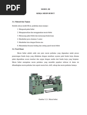 Modul Bubut Docx from imgv2-2-f.scribdassets.com Dengan mesin pemotong rumput serta aksesoris head tambahan. Didalam konstruksi kepala tetap, terdapat roda pully yang dihubungkan dengan motor penggerak. Perhitungan waktu pengeboran pada mesin bubut, pada prinsipnya sama dengan menghitung waktu pemesinan bubut rata dan bubut muka.