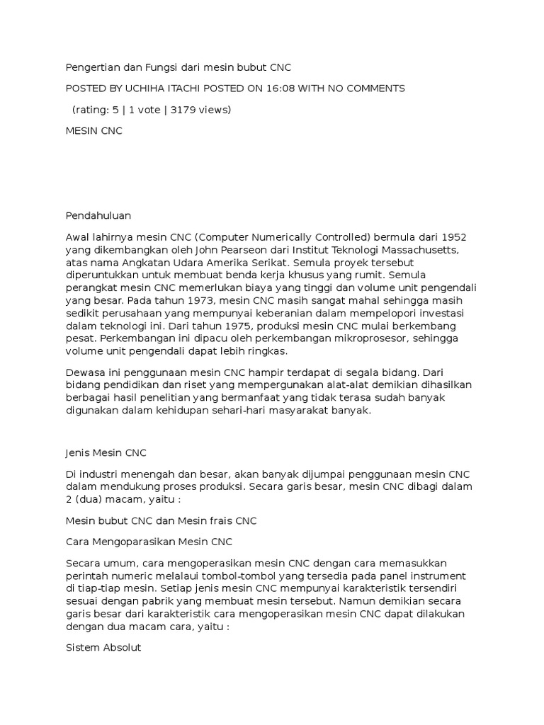 Pengertian Dan Fungsi Dari Mesin Bubut Cnc from imgv2-2-f.scribdassets.com Lalu apa itu mesin cnc? Gambar 1.1 mesin cnc milling 6 a. Dioperasikan dengan sistem computer numerical control (cnc) dan dilengkapi dengan instruksi bed pada mesin cnc bubut adalah tumpuan dari seluruh mesin dimana seluruh komponen mesin cnc bubut modern dapat di program dengan beberapa cara :