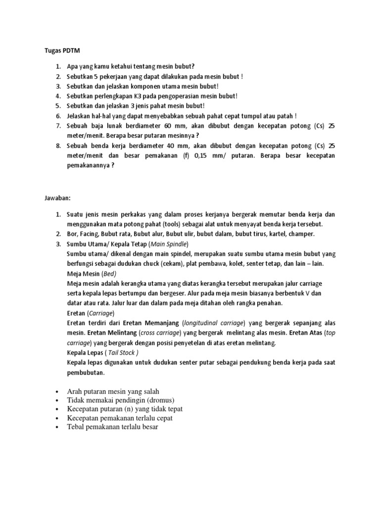 Tugas Pdtm from imgv2-2-f.scribdassets.com Cekam kollet berfungsi untuk mengikat benda kerja yang pada umumnya mempunyai bentuk yang kecil dan rumit. Uraikanlah hal apa yang kamu dapatkan dalam penggunaan media sosial media apa yg ingin bergabung dengan brainly? Sebutkan 5 pekerjaan yang dapat dilakukan pada mesin bubut !