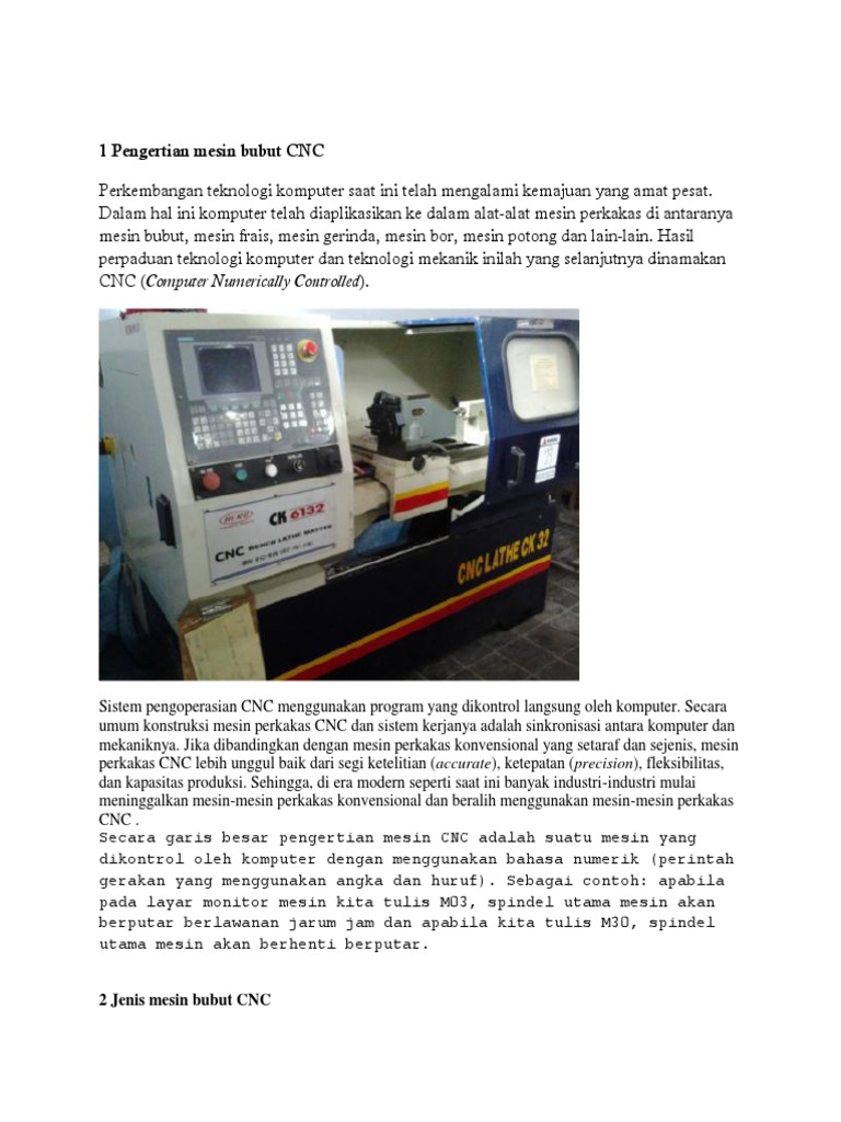 Memiliki pergerakan yang sama seperti mesin bubut konvensional yaitu gerakan ke arah melintang dan horizontal. Mesin bubut cnc merupakan mesin bubut yang bisa beroperasi secara otomatis tanpa perlu bantuan manual manusia. Computer numerical controlled (cnc) merupakan pengembangan teknologi dari bubut konvensional. Karena informasi yang digunakan berbentuk rumus matematik, maka sistem.
