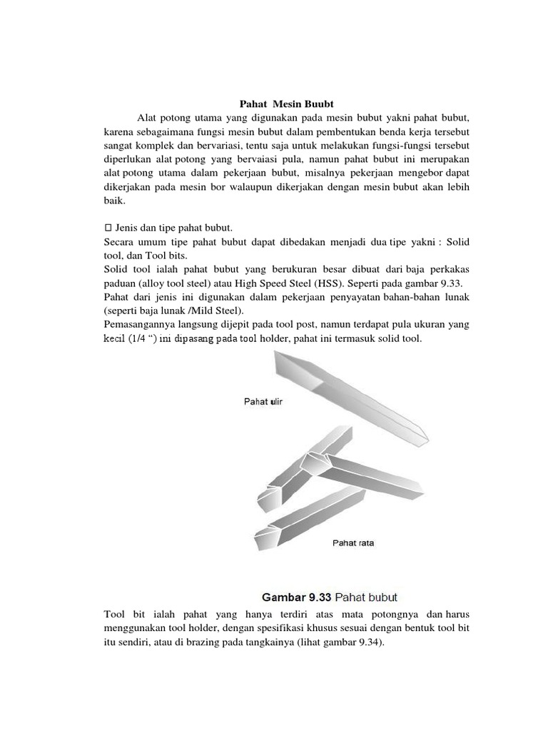 Pahat Mesin Buubt from imgv2-1-f.scribdassets.com Lathe) adalah suatu mesin perkakas yang digunakan untuk memotong benda yang diputar. Membubut muka/facing, rata lurus dan bertingkat, tirus, mengalur, memotong, mengulir, membentuk/mengebor, memperbesar lubang, mengkartel,mereamer dll. Mesin potong batu candi diatas hampir sama dengan mesin potong tadi.