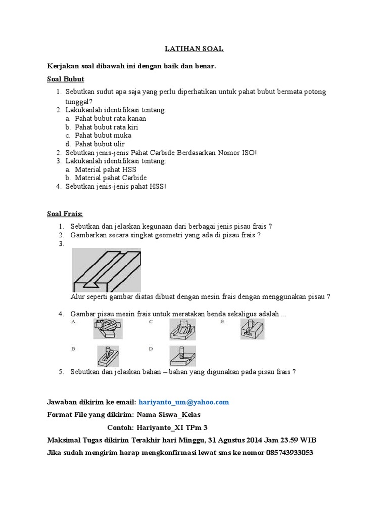 Contoh Soal Mesin Cnc Kelas 12 Contoh Soal Terbaru from image.slidesharecdn.com Bagian mesin cnc milling yang berfungsi untuk menyimpan beberapa tool adalah… a. Tiga jenis , yaitu : Contoh soal eoq beserta pembahasannya.