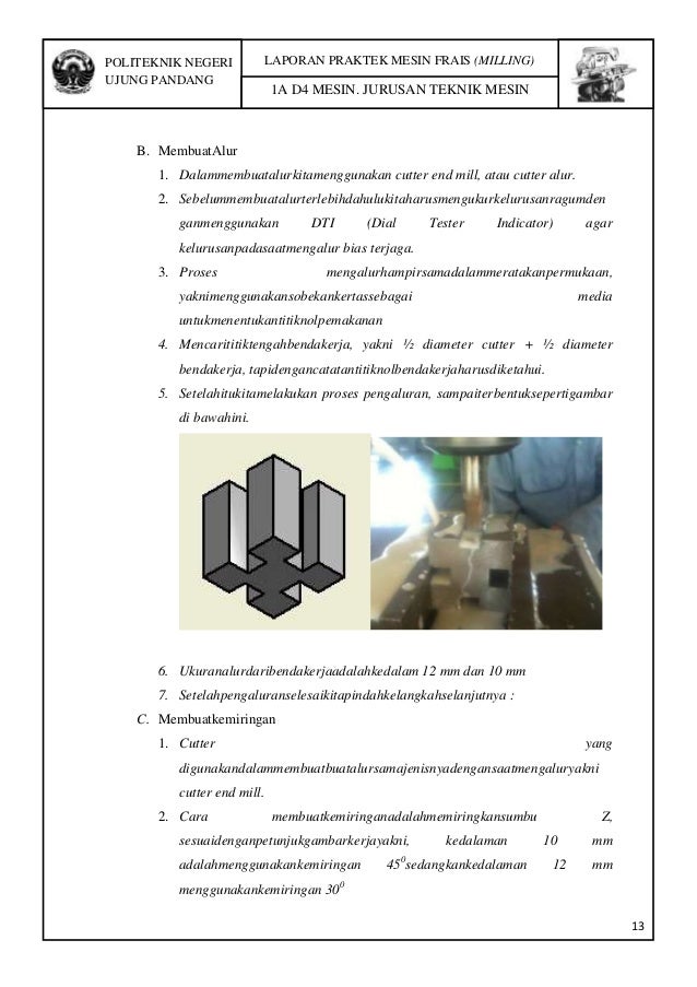 Laporan Pendahuluan Mesin Frais from imgv2-1-f.scribdassets.com Jurusan teknik mesin laporanpraktek mesinfrais(milling) untukmemenuhisyaratmatakuliah 2. 3 politeknik negeri ujung pandang laporan praktek mesin frais (milling) 1a d4. Pada pekerjaan dengan menggunakan mesin tnc milling digunakan toleransi geometri dan toleransi sudut.