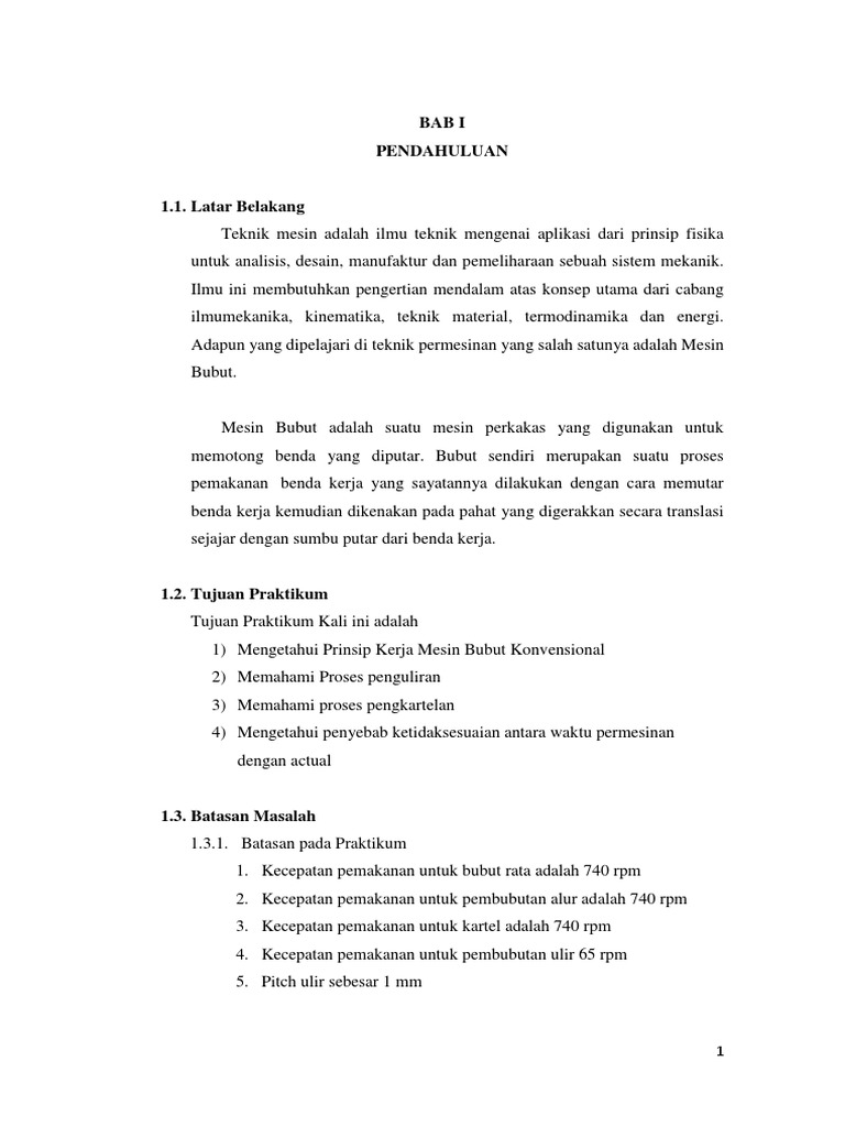 Download Contoh Laporan Tentang Mesin Bubut Background. Sebelum mahasiswa menggunakan mesin bubut diharapkan mahasiswa memahami terlebih dahulu tentang teori dasar dan tata cara menggunakan mesin bubut yang benar. Tujuannya agar laporan hasil observasi yang dibuat dapat dipertanggung jawabkan.