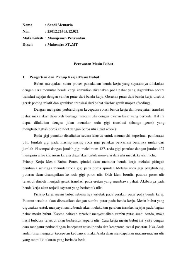 Download Contoh Teks Prosedur Tentang Mesin Bubut
