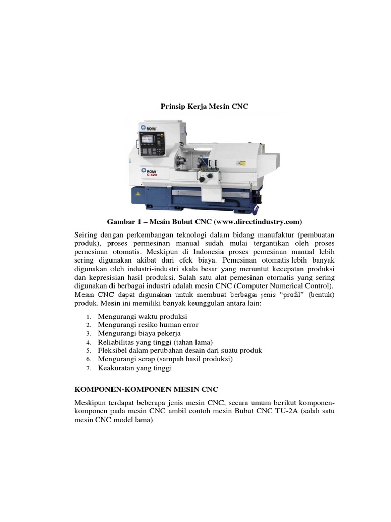 Mesin bubut cnc production unit ( cnc pu). Dengan cara benda kerja yang akan di potong itu di putar dengan. Cnc tu dipergunakan untuk pelatihan dasar pemograman dan pengoperasian cnc yang dilengkapi. Pada tahun 1952 mesin cnc diciptakan oleh john pearseon dari institut teknologi massachusetts.