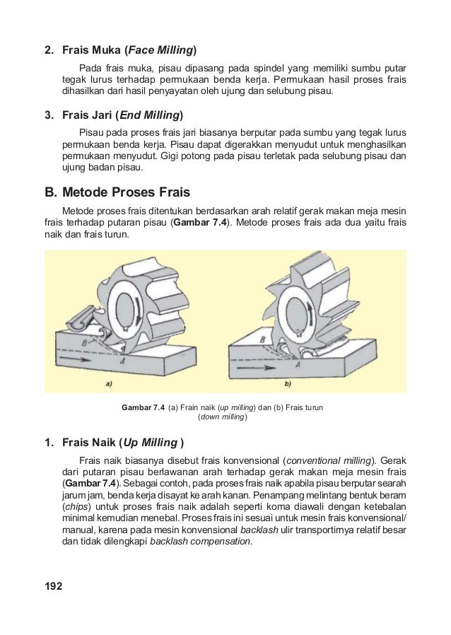 Doc Cara Mengoperasikan Mesin Frais Dini Soefyan Academia Edu from 0.academia-photos.com Mesin freis vertical dapat bertipe knee. Permukaan hasil proses frais dihasilkan dari hasil penyayatan oleh ujung dan selubung alat potong. Arah dari putaran pahat sama dengan arah gerak makan meja mesin frais.