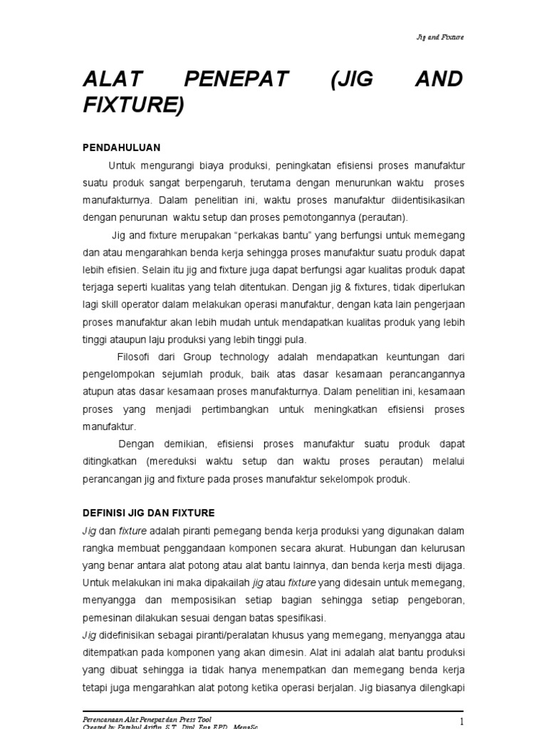 Lokasinya di utara kota pasurua. Tujuan utama dari fixture adalah untuk menempatkan pekerjaan dengan cepat dan akurat , menahan dengan benar dan aman, sehingga memastikan bahwa semua bagian yang. Wahyu puspa wijaya 140511602945 universitas negeri malang fakultas teknik jurusan teknik mesin program studi s1 pendidikan teknik mesin november 2016 kata pengantar assalamualaikum wr.wb puji syukur kehadirat allah swt. Dalam penelitian ini, waktu proses manufaktur diidentisikasikan dengan penurunan waktu setup dan proses pemotongannya (perautan).