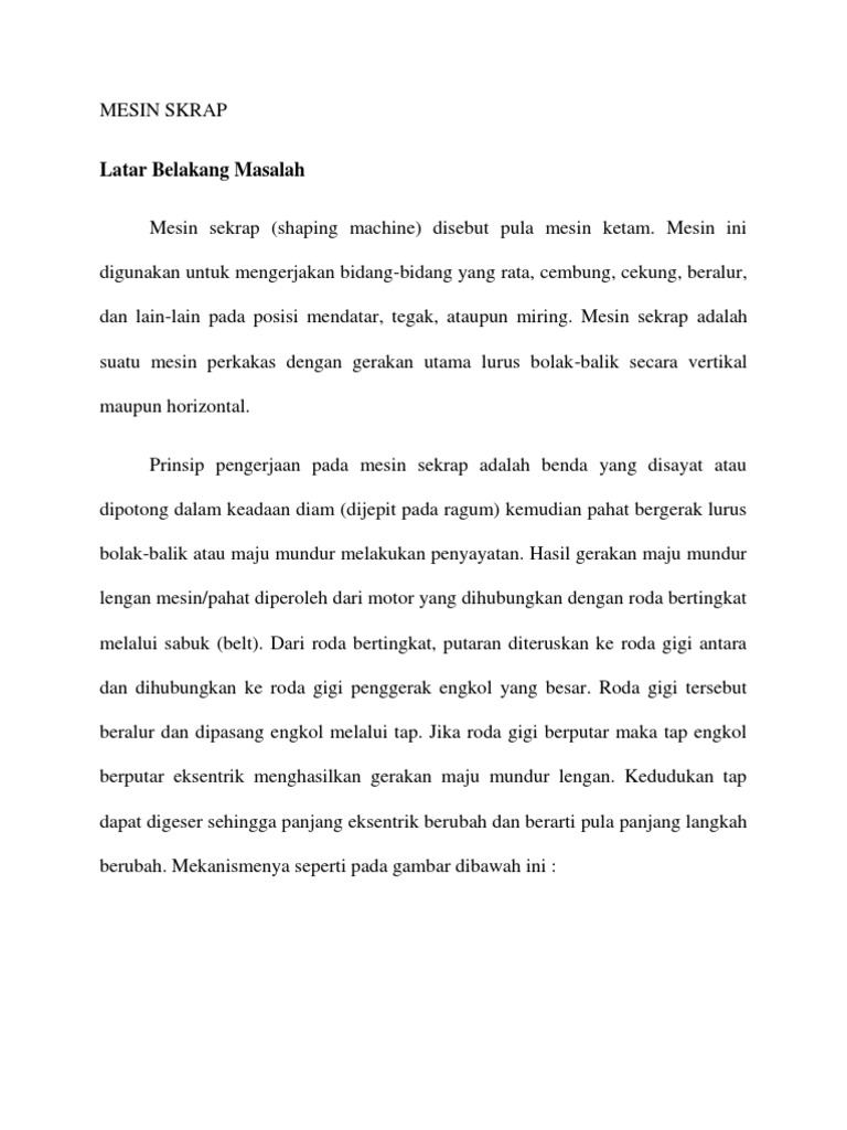 PNG. Berfungsi untuk mengatur kedudukan pahat terhadap benda kerja. A.shaping machine b.planer c.alur d.sloting e.pully.